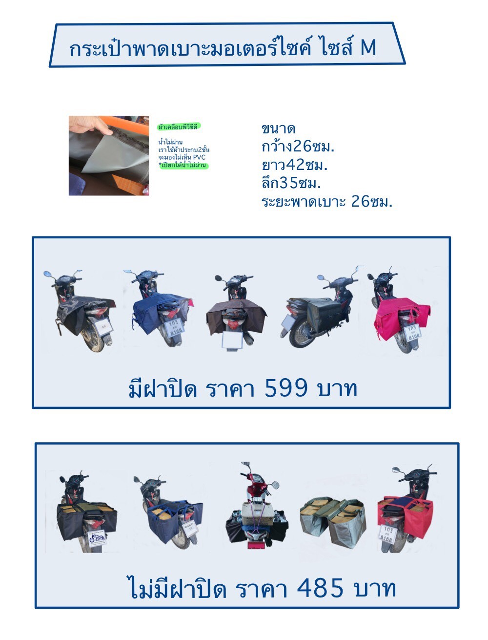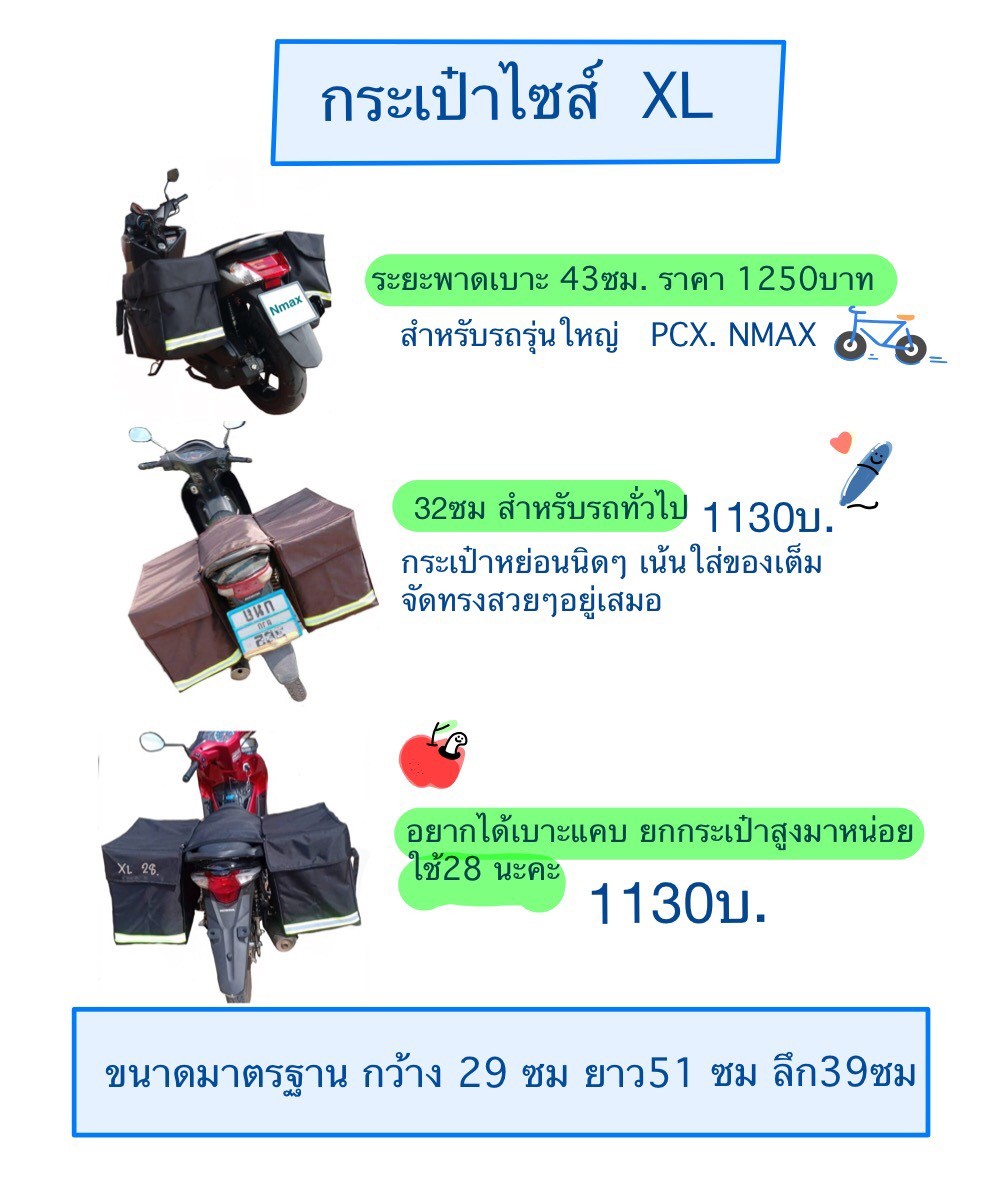 ไซส์พิเศษ เพิ่มเติม 100 บาท เพิ่มระยะพาดเบาะให้กว้างขึ้น สำหรับรถรุ่นใหญ่ pcx nmax 43 หรือ50 ซม. ตามใจลูกค้าได้เลยค่ะ